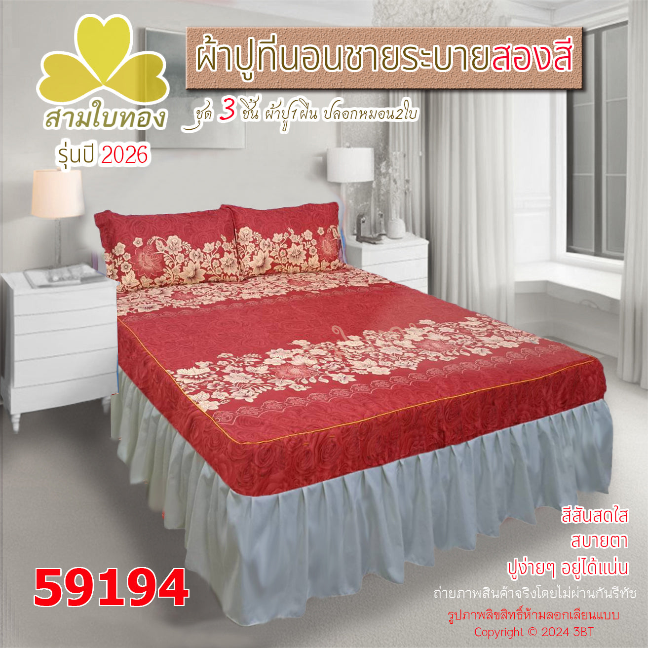 ผ้าปูที่นอนชายระบายสองสี กระโปรงเตียง ดีไซน์ใหม่ปี 2026