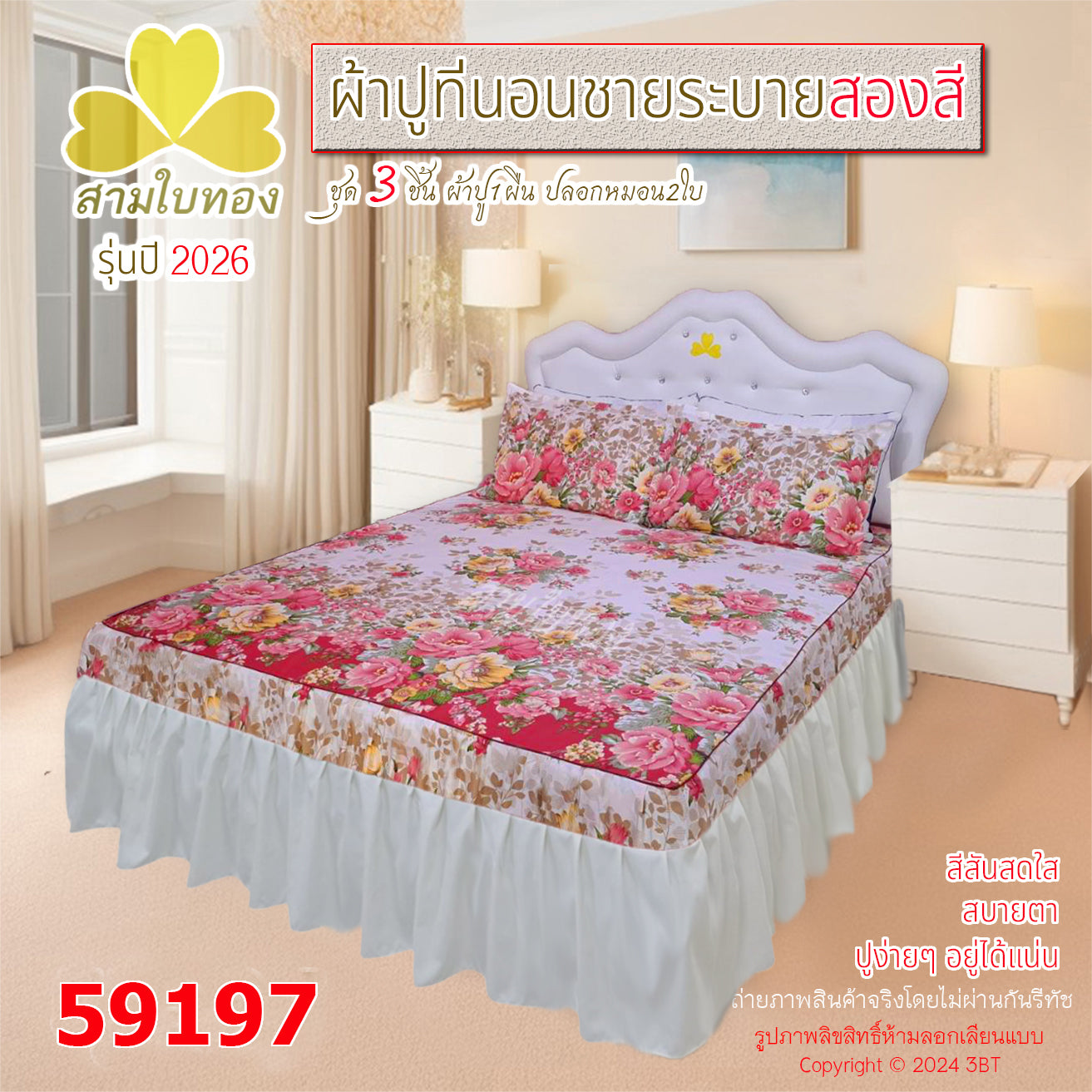 ผ้าปูที่นอนชายระบายสองสี กระโปรงเตียง ดีไซน์ใหม่ปี 2026